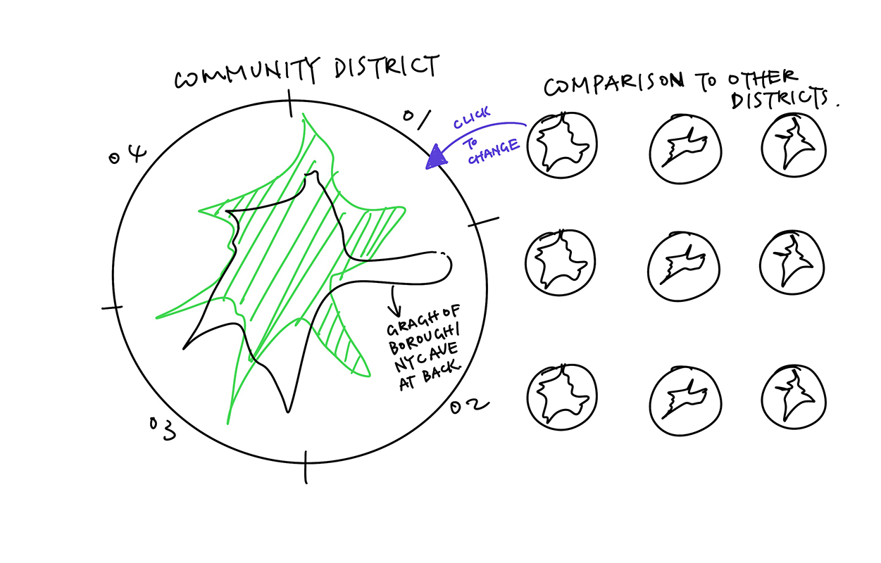 There are already detailed breakdowns and comparisons in each report of the 59 community districts; but the information is too heavy and too distributed.